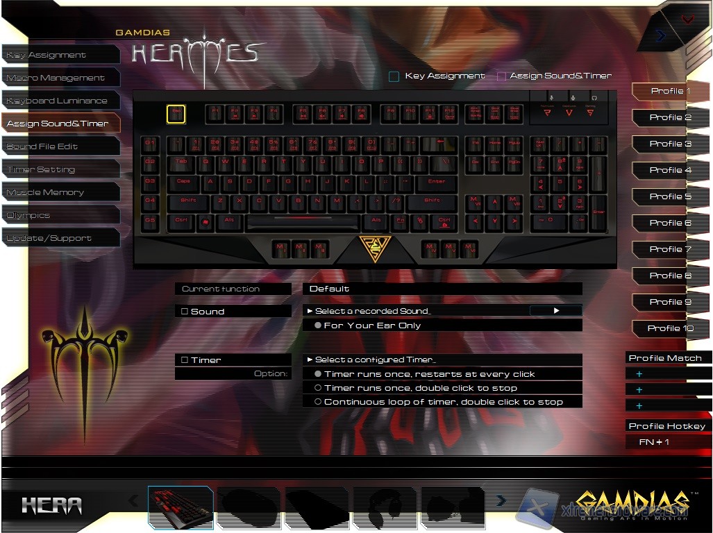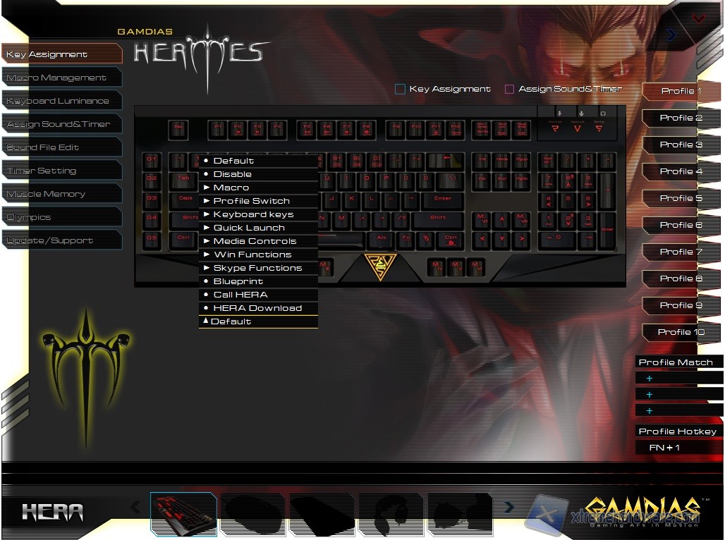 A corredo dellaGAMDIAS Hermes Ultimate non viene fornito nessun CD-ROM con il software per la gestione della tastiera, ma ci basterà collegarci a questo indirizzo e scaricare il software di gestione Hera 2.0 che permette di controllare non solo la Hermes Ultimate, ma anche altri prodotti della GAMDIAS, come mouse o headset.