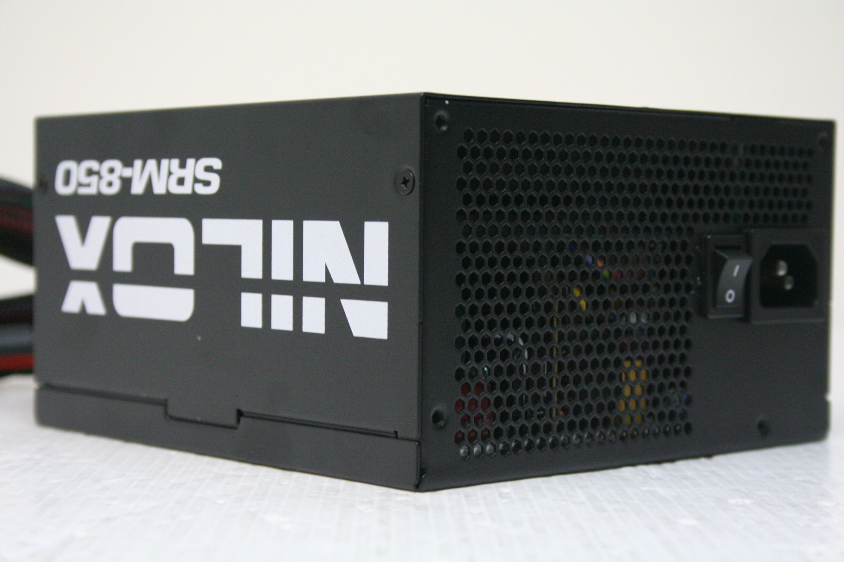 Analizzando brevemente il telaio esterno possiamo dire che è abbastanza standard. Posteriormente troviamo le connessioni semi-modulari, ripartite per colore (in Rosso le PCI-E). Il connettore di alimentazione in ingresso ha lo standard C14, quindi di dimensioni classiche ed il pulsante similmente non differisce dallo standard. La ventola utilizzata è da 140mm ed è un modello di un notissimo produttore, presente quindi in alimentatori di fascia Enthusiast, come vedremo nei prossimi capitoli. Lo sticker superiore rende impossibile la lettura delle specifiche all’interno del cabinet quindi sarebbe opportuno posizionarlo al lato destro, proprio dove troviamo il logo Nilox. La verniciatura è ottima e non sono presenti sbavature od imperfezioni.