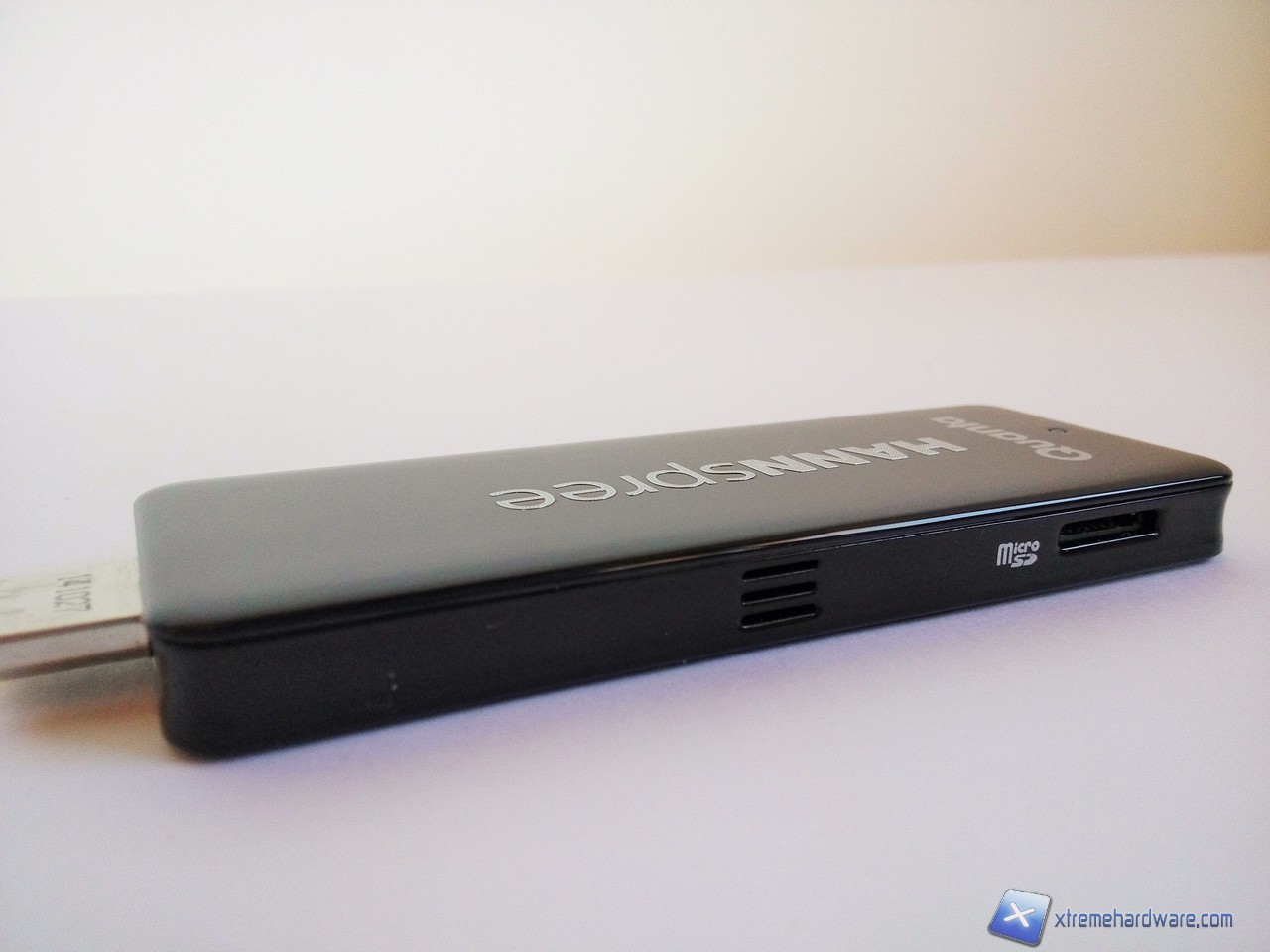 La struttura di Hannspree Quanta è realizzata interamente in plastica, ci sono alcune porte di I\O quali il connettore HDMI, lo slot MicroSD, una porta USB per eventuali periferiche e la porta microUSB per l'alimentazione. Ci sono infine alcune feritorie per favorire la ventilazione all'interno del minimalistico case ed un LED che segnala lo stato del PC.