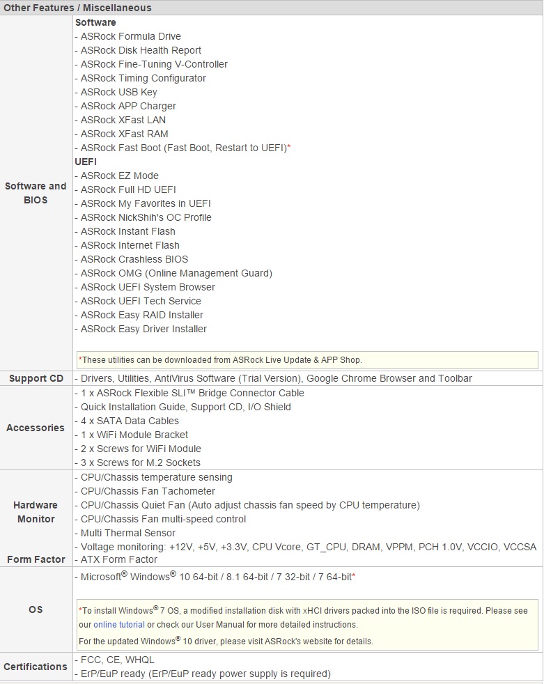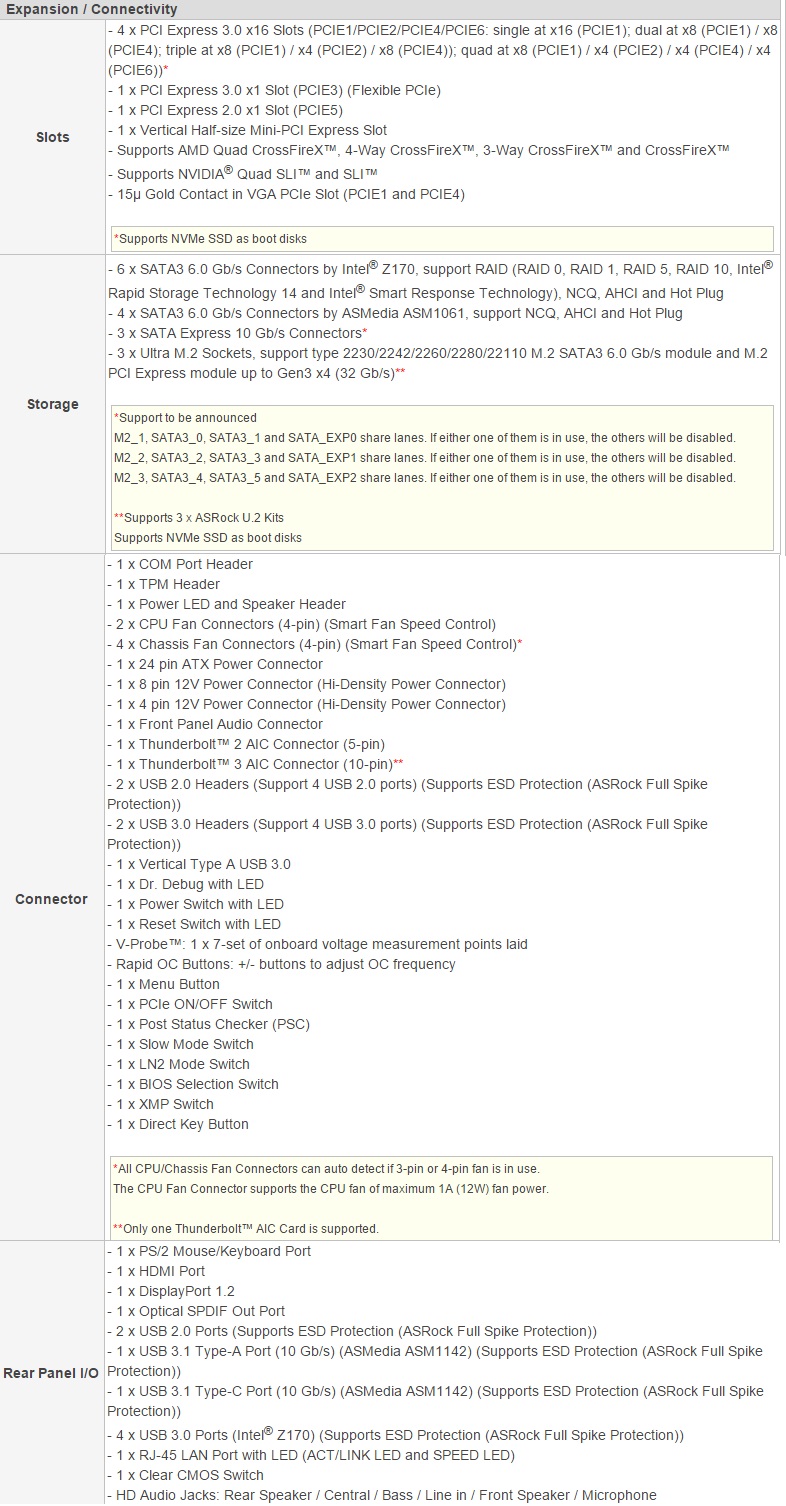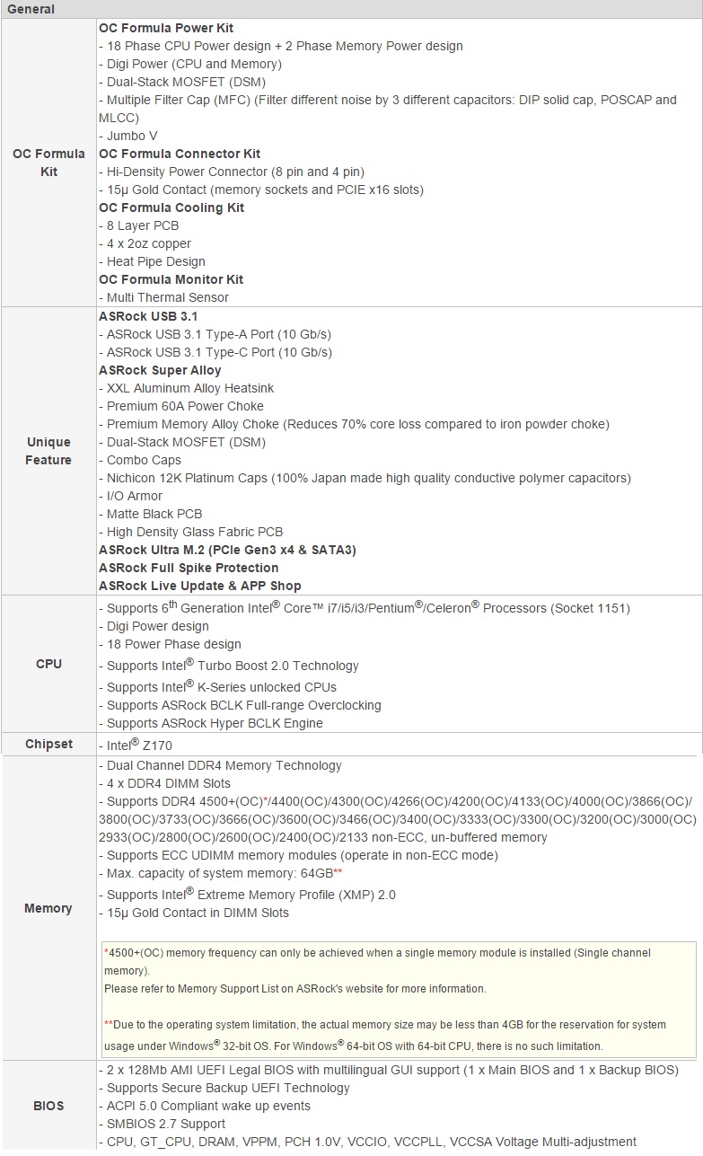 ASRock Z170 OC Formula - Caratteristiche principali e Specifiche Tecniche