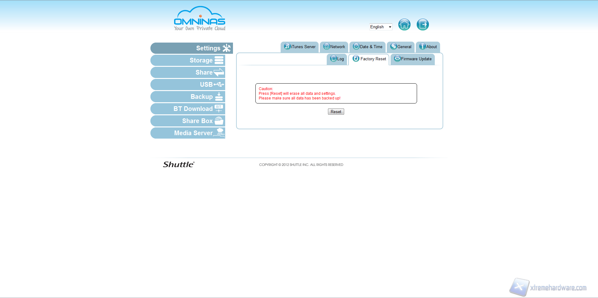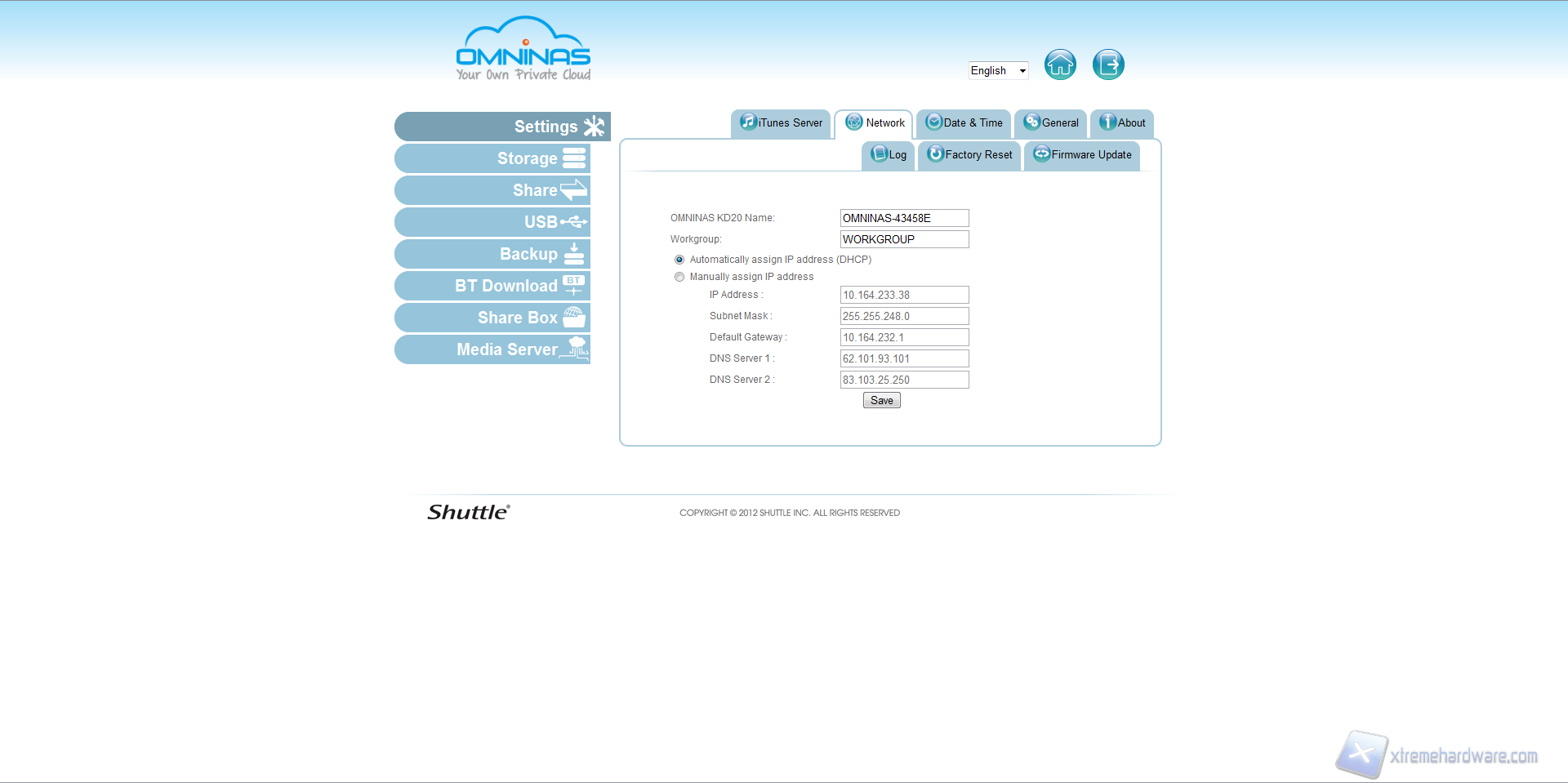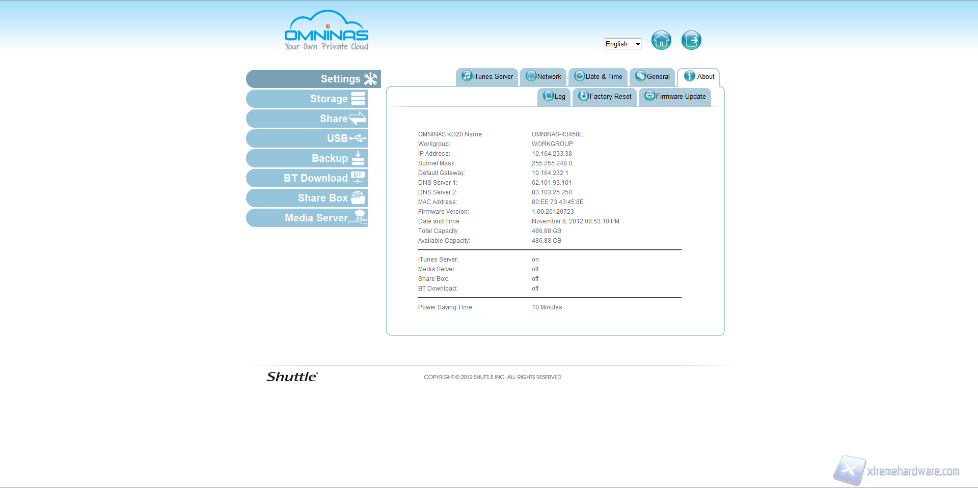 Notiamo infatti il nome del sistema, l’indirizzo IP ed i relativi DNS, la versione del firmware di sistema, la capacità disponibile e totale dei drive e lo status dei servizi di sistema.