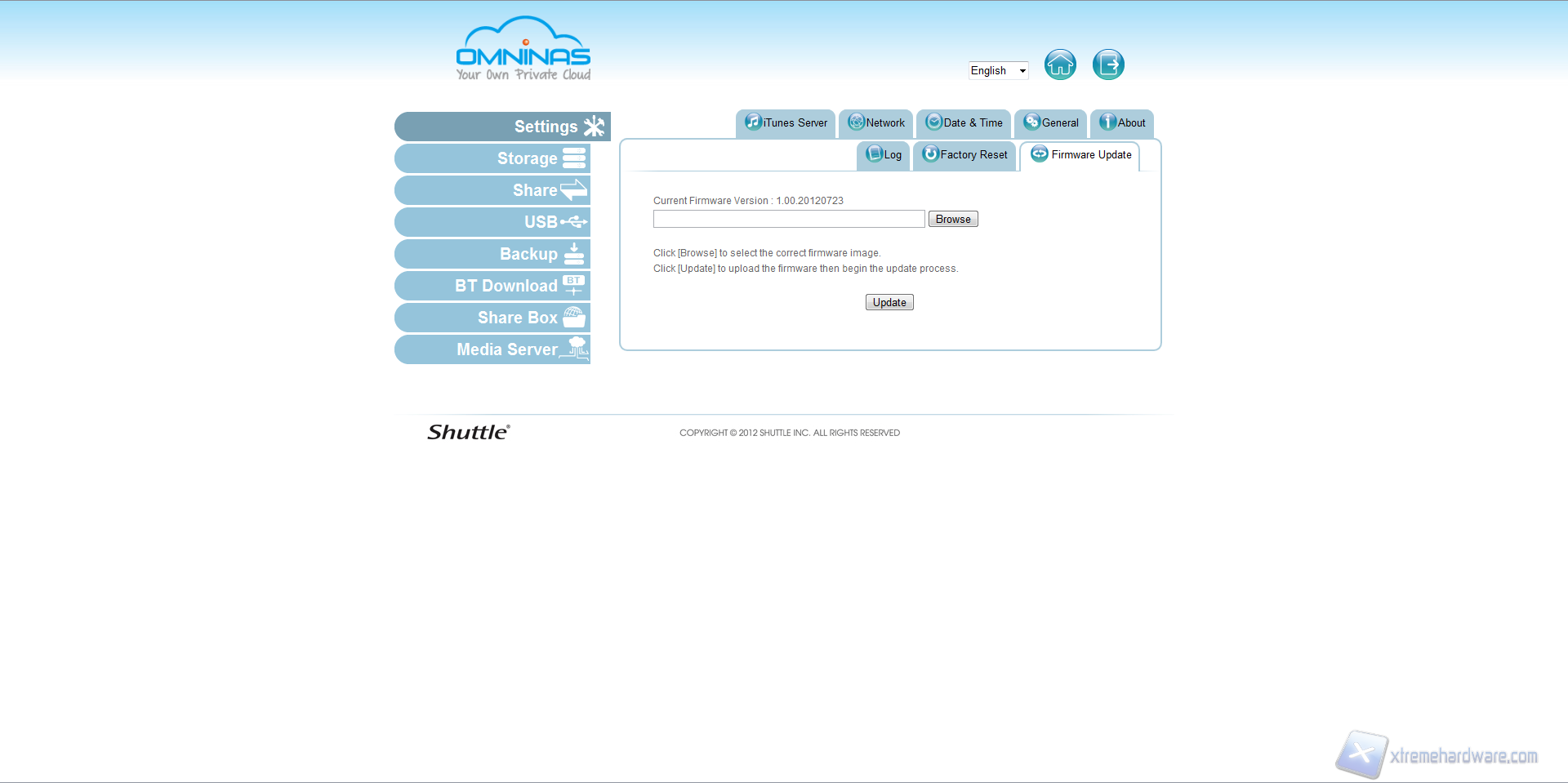 In questa schermata possiamo effettuare l’update del firmware di sistema caricandolo dal PC dal quale si sta effettuando l’operazione.